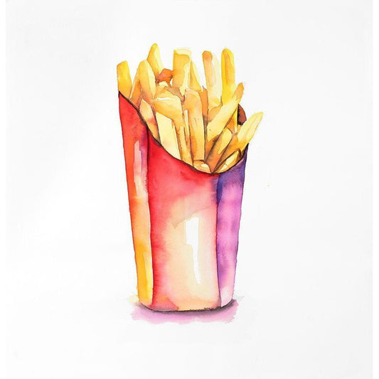 Watercolor French Fries Black Modern Wood Framed Art Print by Atelier B Art Studio