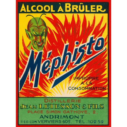 Mephisto - Alcool A Bruler Black Modern Wood Framed Art Print by Vintage Booze Labels