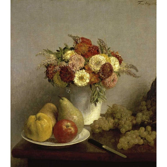 Flowers and Fruit Cuisine Black Modern Wood Framed Art Print by Fantin-Latour, Henri