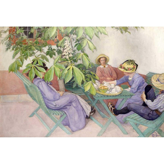 Under The Chestnut Tree Black Modern Wood Framed Art Print by Larsson, Carl