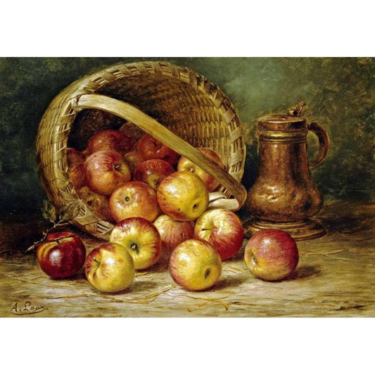 A Basket of Apples Black Modern Wood Framed Art Print by Laux, August