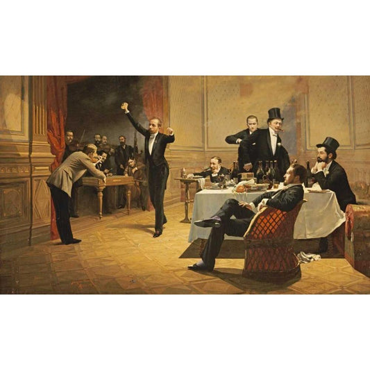 After Dinner Black Modern Wood Framed Art Print by Lambert, Louis Eugene