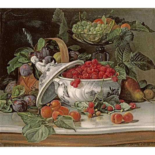 Plums, Grapes and Raspberries Black Modern Wood Framed Art Print by Pedersen, Sophus
