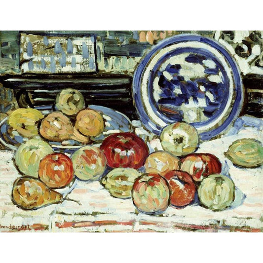 Still Life With Apples Black Modern Wood Framed Art Print by Prendergast, Maurice Brazil