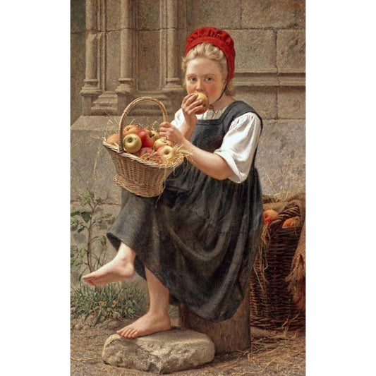 The Apple Girl Black Modern Wood Framed Art Print by Thirion, Charles-Victor