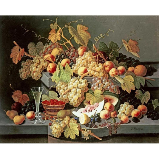 Still Life With Fruit and a Glass of Champagne Black Modern Wood Framed Art Print by Roesen, Severin
