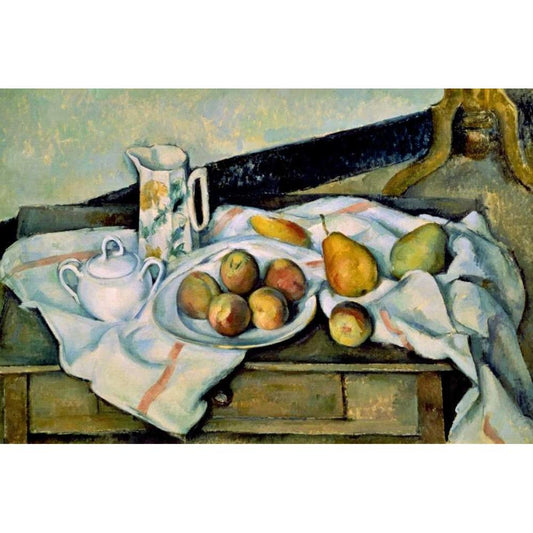 Still Life of Peaches and Pears Black Modern Wood Framed Art Print by Cezanne, Paul