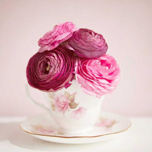 Tea Cup Posies Black Modern Wood Framed Art Print by Susannah Tucker Photography