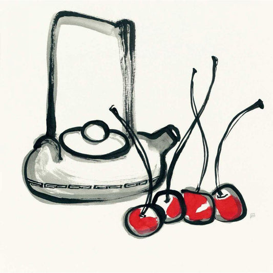 Tea and Cherries Black Modern Wood Framed Art Print by Paschke, Chris