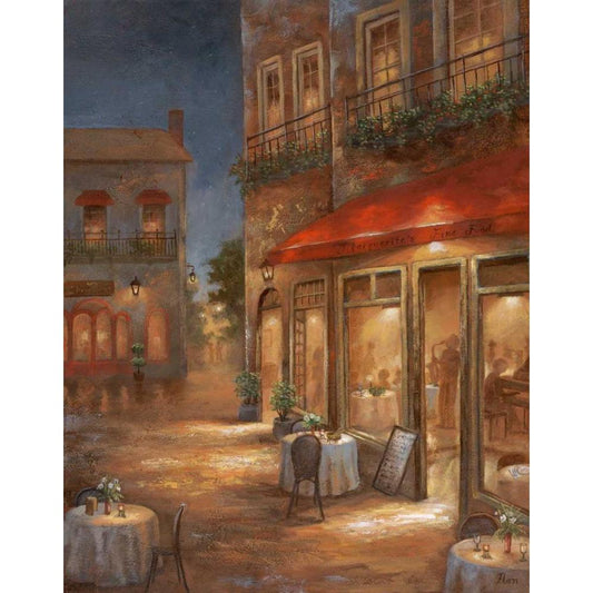 Cafe Marquerite Black Modern Wood Framed Art Print by Nan