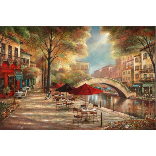 Riverwalk Charm Black Modern Wood Framed Art Print by Manning, Ruane