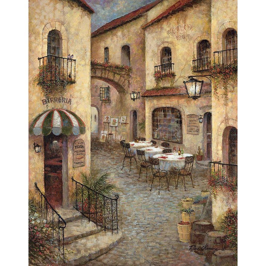Courtyard Ambiance Black Modern Wood Framed Art Print by Manning, Ruane