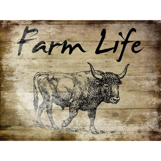 Farm Life Bull Black Modern Wood Framed Art Print by Lewis, Sheldon