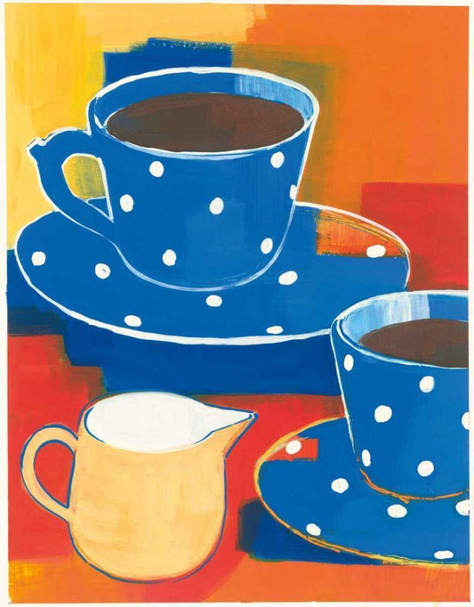 Two Blue Cups White Modern Wood Framed Art Print with Double Matting by Lovell, Kathrine