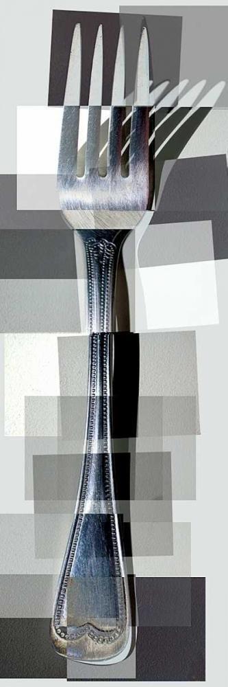 Fork White Modern Wood Framed Art Print with Double Matting by Ventosa, Pep