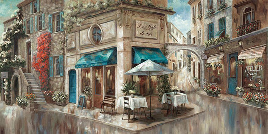 Corner Cafe White Modern Wood Framed Art Print with Double Matting by Nan