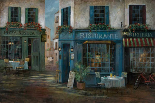 Cafe of the Arts White Modern Wood Framed Art Print with Double Matting by Manning, Ruane