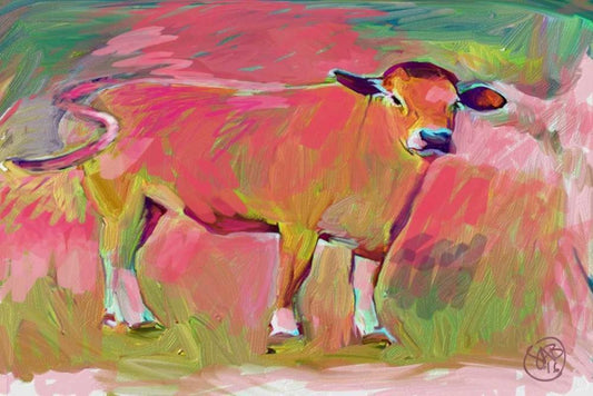 Pink Calf 2 White Modern Wood Framed Art Print with Double Matting by Butcher, Sarah