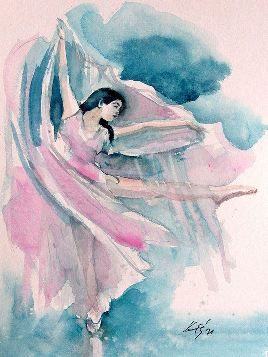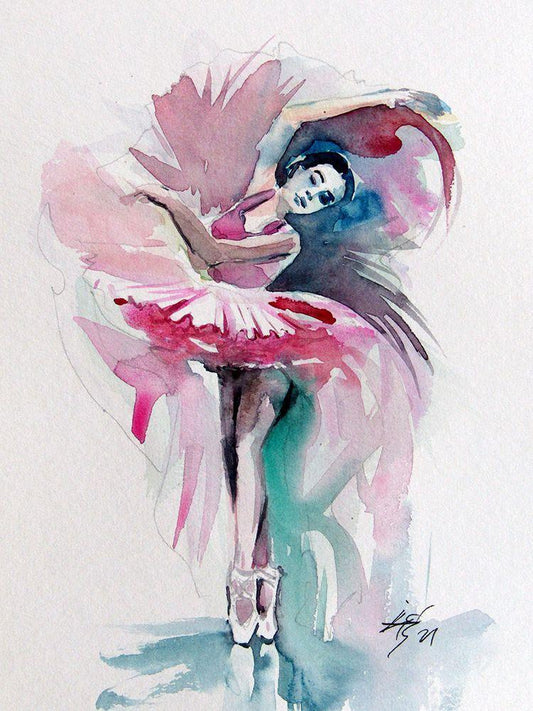 Ballerina in Pink I White Modern Wood Framed Art Print with Double Matting by Kovacs, Anna Brigite