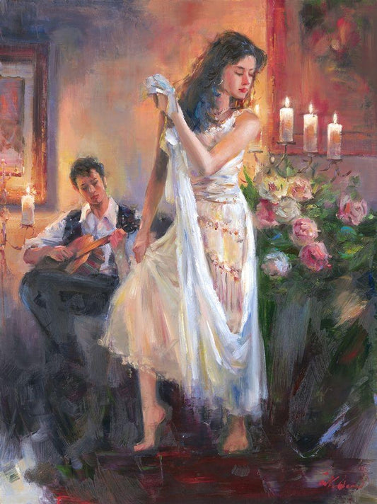 The Boy with Dancing Girl White Modern Wood Framed Art Print with Double Matting by Noches, Fernando