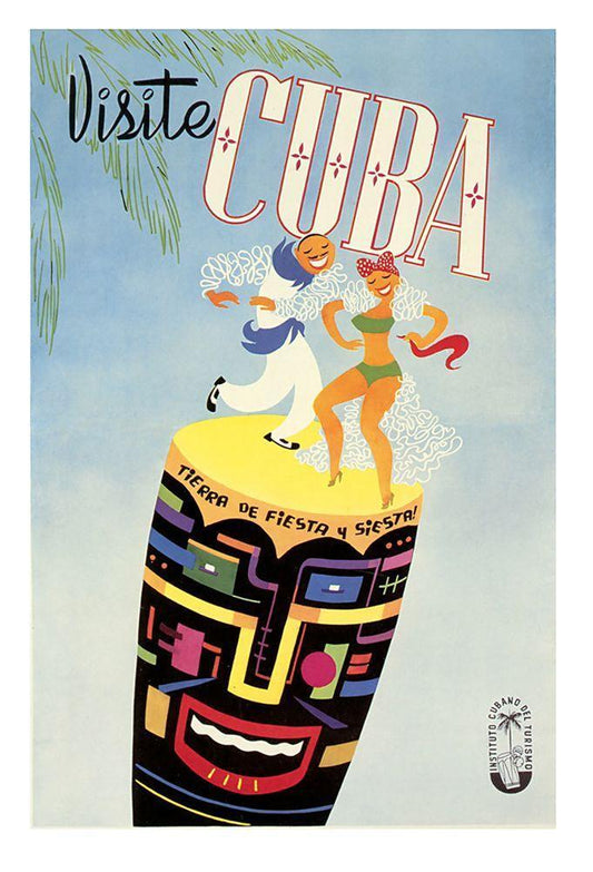 Visite Cuba Black Ornate Wood Framed Art Print with Double Matting by Vintage Apple Collection