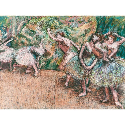Dancers, Pink and Green Black Modern Wood Framed Art Print with Double Matting by Degas, Edgar