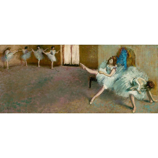 Ballet Rehearsal on Stage Black Modern Wood Framed Art Print with Double Matting by Degas, Edgar