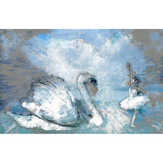 Swan Lake Black Modern Wood Framed Art Print with Double Matting by Di Scenza, Ron