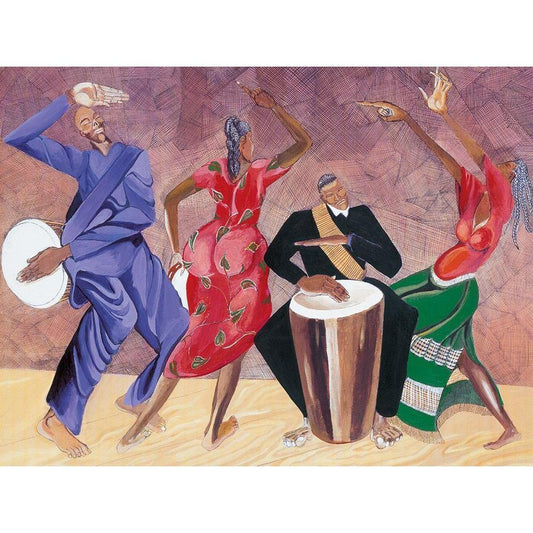 Island Dancing Black Modern Wood Framed Art Print with Double Matting by Unknown
