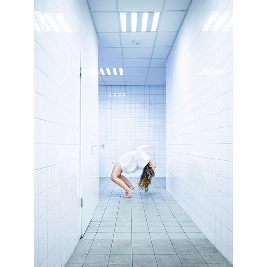Ballerina Lying On The Stairs 2 Bw Black Modern Wood Framed Art Print with Double Matting by Nanev, Vasil