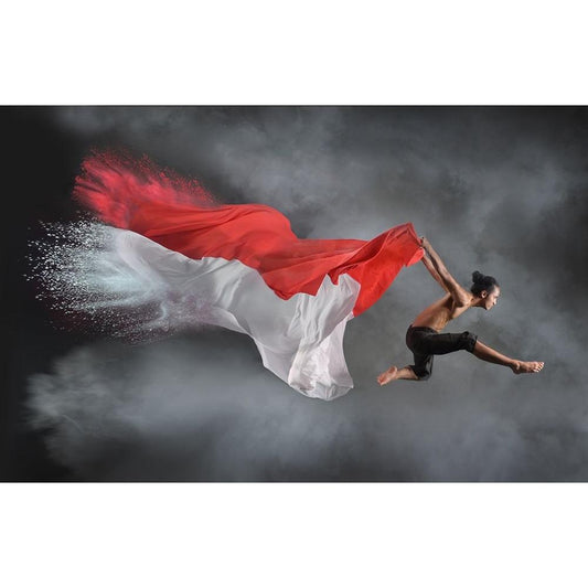 Dance Of Red And White Cloths Black Modern Wood Framed Art Print with Double Matting by Aditya, Rawisyah