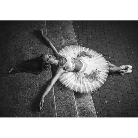 Ballerina Lying On The Stairs Bw Black Modern Wood Framed Art Print with Double Matting by Nanev, Vasil