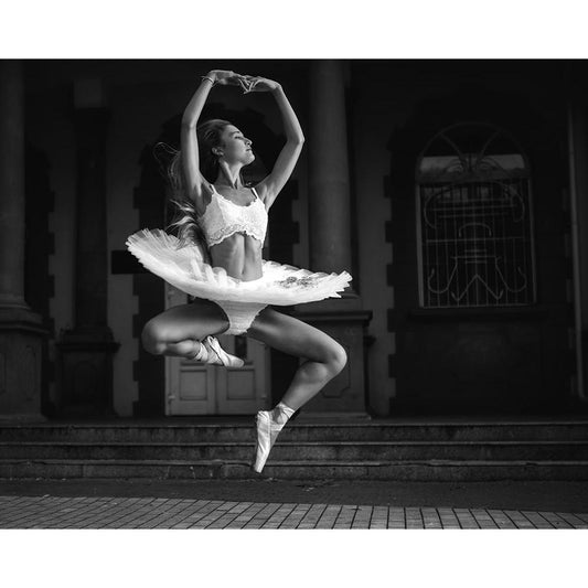 Ballerina Is Posing 6 Bw Black Modern Wood Framed Art Print with Double Matting by Nanev, Vasil