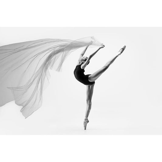 Flying Cloth Ballerina Black Modern Wood Framed Art Print with Double Matting by Suhardjo, Lisdiyanto