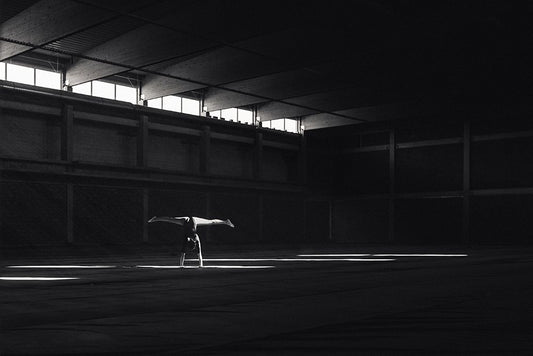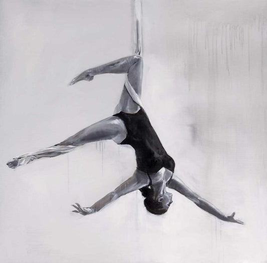 Woman Dancer on Aerial Contortion White Modern Wood Framed Art Print with Double Matting by Atelier B Art Studio