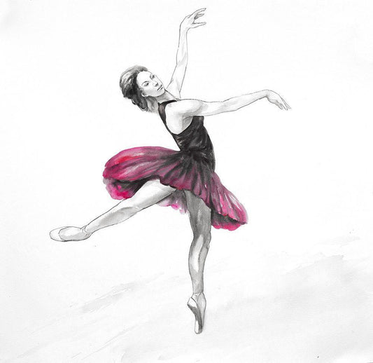Small Pink Ballerina White Modern Wood Framed Art Print with Double Matting by Atelier B Art Studio