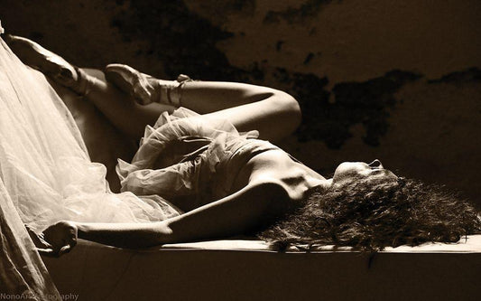 Woman Dancer on Aerial Silks White Modern Wood Framed Art Print with Double Matting by Atelier B Art Studio