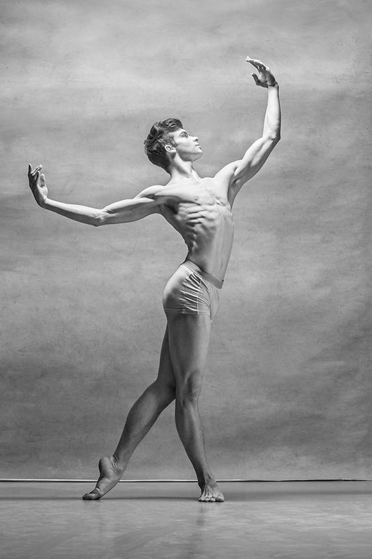 Classical Jumping Man White Modern Wood Framed Art Print with Double Matting by Atelier B Art Studio
