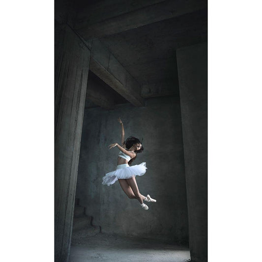 Flying Dance Black Modern Wood Framed Art Print with Double Matting by Kisworo, Sebastian