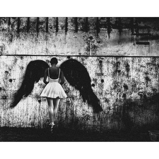 Angel Dancer Black Modern Wood Framed Art Print with Double Matting by Hasheminasab, Moein