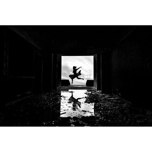 Dancing With The Balloon Black Modern Wood Framed Art Print with Double Matting by Almawash, Sulaiman