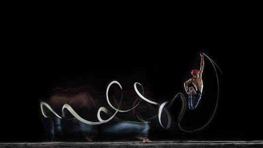 Jump Up A Lite Up Your Life White Modern Wood Framed Art Print with Double Matting by Wang, Willy
