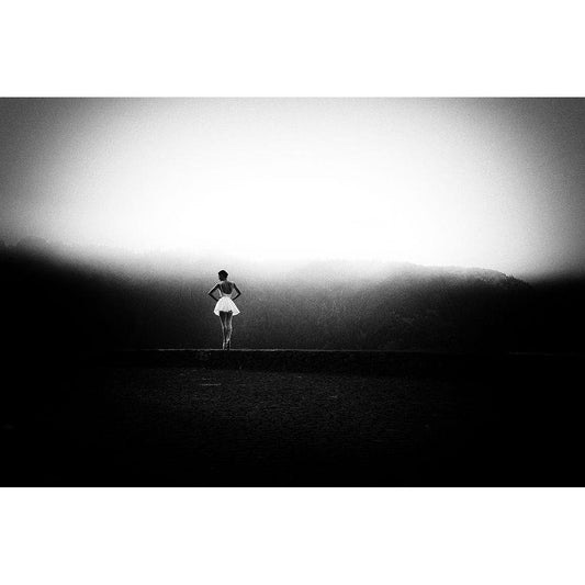The Nymph-The Girl On The Cube Black Modern Wood Framed Art Print with Double Matting by Alexandr