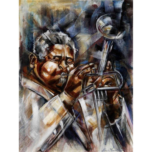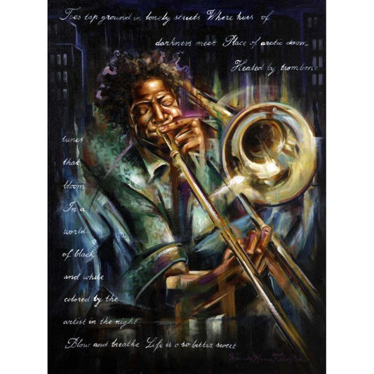 Trombone tunes Black Modern Wood Framed Art Print with Double Matting by Fields, Wendy