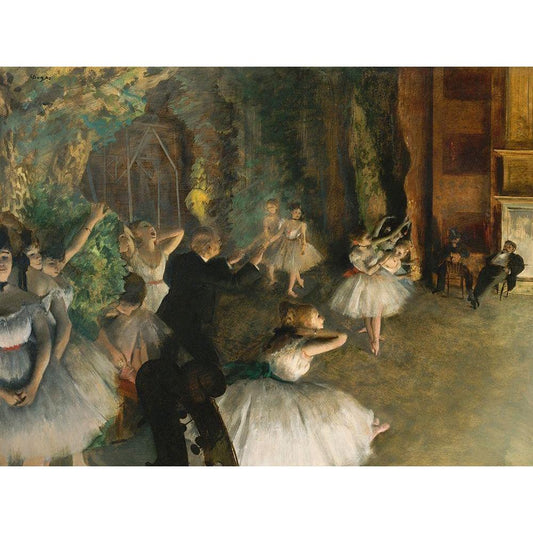 The Rehearsal of the Ballet Onstage Black Modern Wood Framed Art Print with Double Matting by Degas, Edgar