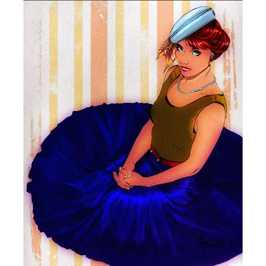 French Girl Black Modern Wood Framed Art Print with Double Matting by Vintage Apple Collection