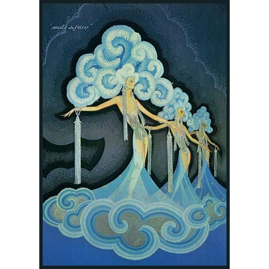 Folies Bergere Blue Black Modern Wood Framed Art Print with Double Matting by Vintage Apple Collection
