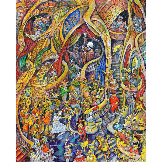 Skeleton Dance Black Modern Wood Framed Art Print with Double Matting by Green, Howie
