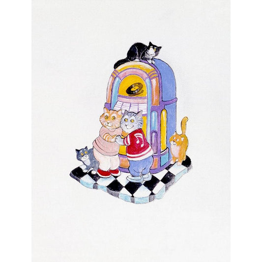 50s Cats Black Modern Wood Framed Art Print with Double Matting by Bell, Bill