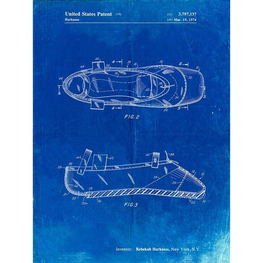 PP267-Faded Blueprint Ballet Slipper Patent Poster Black Modern Wood Framed Art Print with Double Matting by Borders, Cole